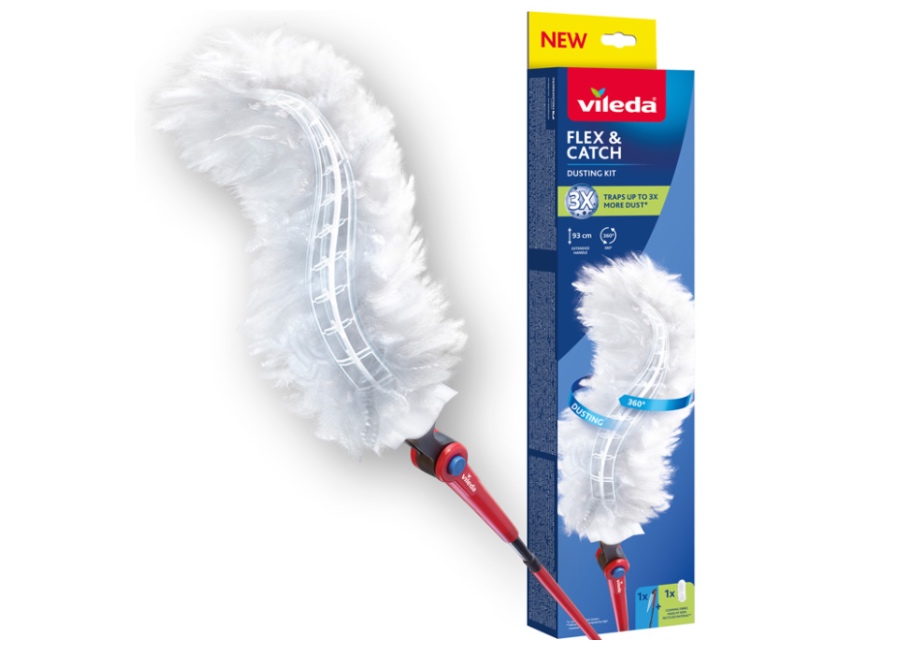 Vileda punta a rilanciare il comparto grazie alla differenziazione tecnologica, facendo leva sulla forza del brand. Il cuore dell’innovazione è la testina ultra-flessibile brevettata, che si piega per raggiungere punti normalmente inaccessibili e consente di catturare fino a tre volte più polvere rispetto ai piumini tradizionali. Il piumino extra large, più lungo del 20% rispetto ai principali competitor, è rivestito a 360 gradi da fibre pulenti realizzate al 100% con materiale riciclato e dotato di un sistema di aggancio che ne evita lo sfilamento durante l’uso. Flex&Catch è disponibile in due varianti con ricambio incluso: con manico corto o con manico telescopico estensibile fino a 93 cm, oltre a ricambi separati.